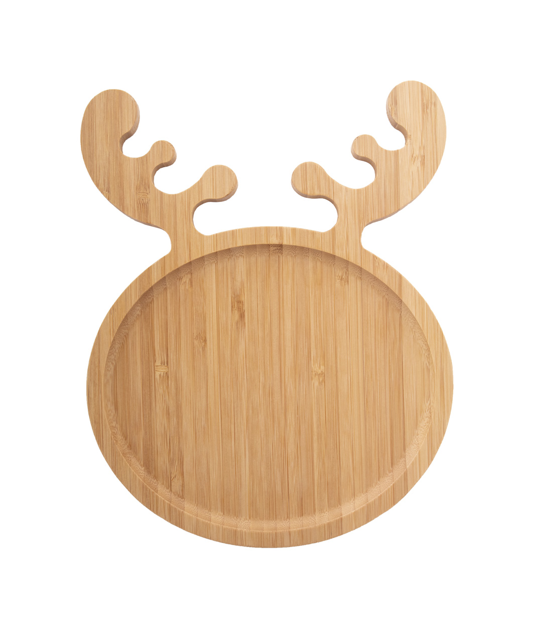 Reindeer shaped snack plate in bamboo.