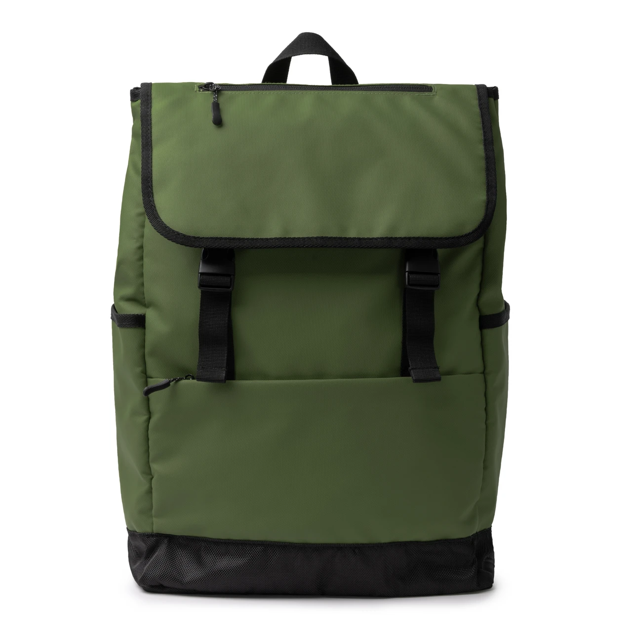 Elegant backpack for professional use with a flap made of PU leather. Includes a large internal compartment with a 15" laptop pocket. Features soft shoulder straps and back for comfort, as well as additional external pockets for easy access to small items. Capacity: 20L.