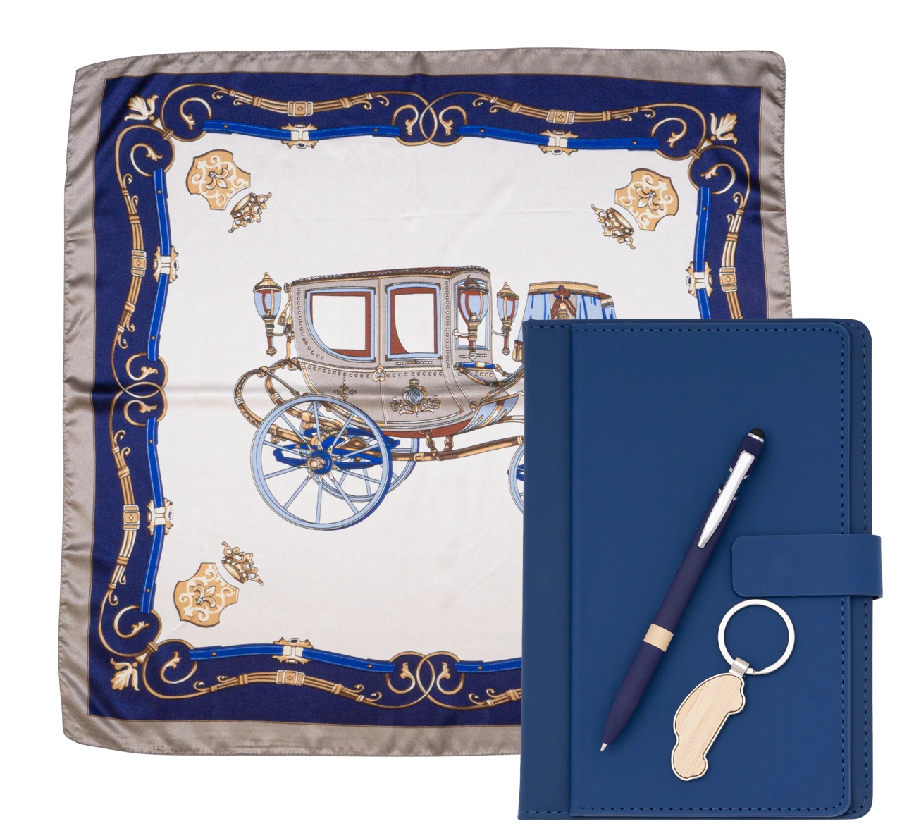 Този сет включва тефтер с твърда корица от еко кожа с магнитно закопчаване, химикалка в същия тон с бамбуков акцент, дамски шал и бамбуков ключодържател във формата на автомобил.