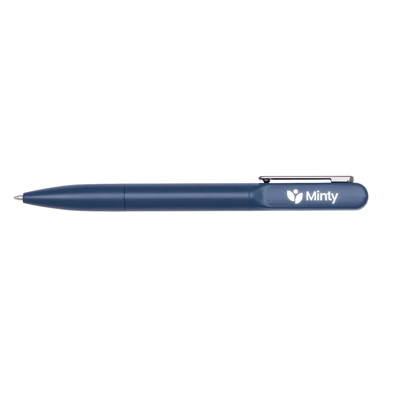 Метална химикалка с гладко цилиндрично тяло, което завършва с плоска горна част. След гравиране в тази част, при включване на химикалката надписът свети в бяла светлина. Това придава на химикалката модерна и футуристична визия, правейки я идеална за хора, които търсят комбинация от стил, технология и функционалност.