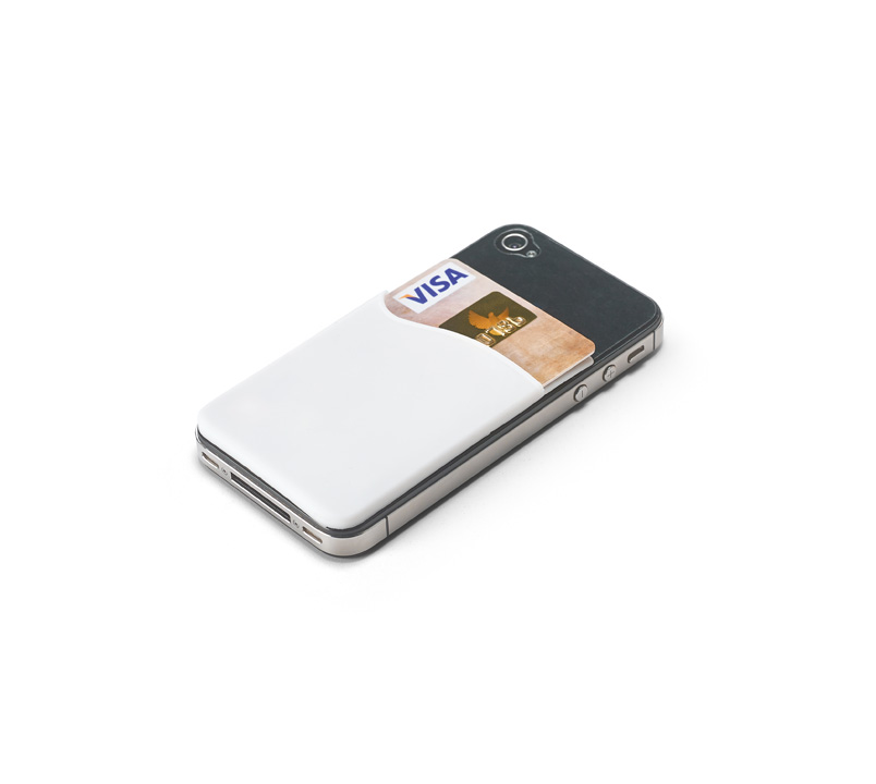 Залепящ се силиконов калъф за документи. Калъфът разполага с джоб за карти и пари отпред и самозалепващ гръб, подходящ за монтиране върху гладки и равни повърхности, като мобилни телефони и таблети. Поради изчистените и гладки форми на калъфа, той е много подходящ за фирмено брандиране или рекламна кампания.